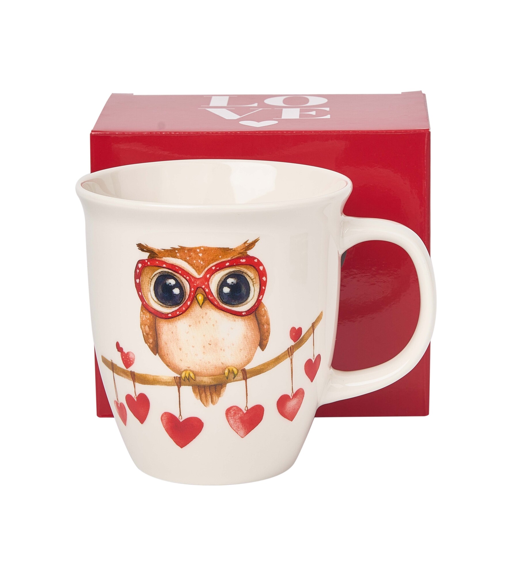 Kubek 650 ml SOWA wchodzący w skład linii SERCA, wykonany z porcelany New Bone China, charakteryzującej się elegancką i naturalną kremowo - białą barwą z delikatnym połyskiem a także wyjątkową wytrzymałością przy zachowaniu lekkości i delikatności.Linia zdobiona motywem wesołej sowy w czerwonych...