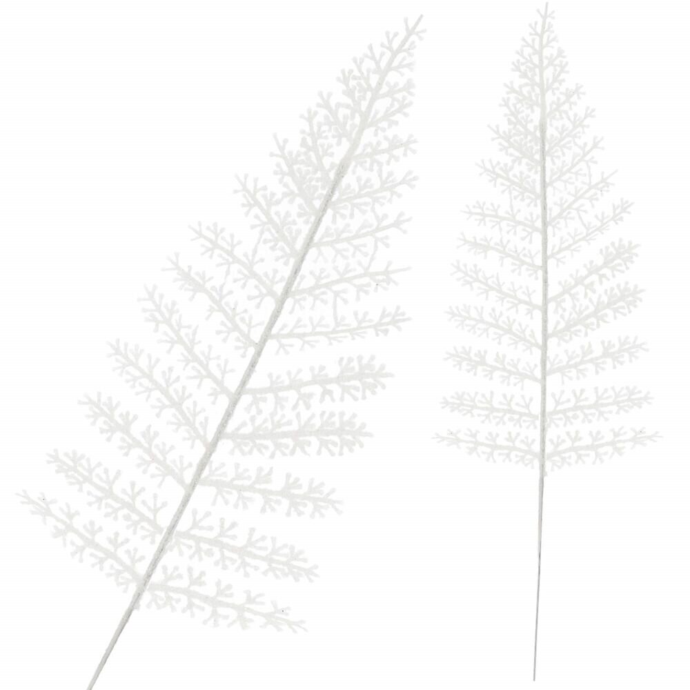 Elegantní dekorativní větvička ve tvaru kapradiny dodá vánočním aranžmá jemný a slavnostní nádech. Bílé provedení krásně odráží světlo a vytváří efektní třpyt. Ideální do svícnů, věnců, kytic nebo jako doplněk ke stromku či stolní dekoraci. Délka 44 cm, šířka 13 cm.Hlavní přednostiElegantní...