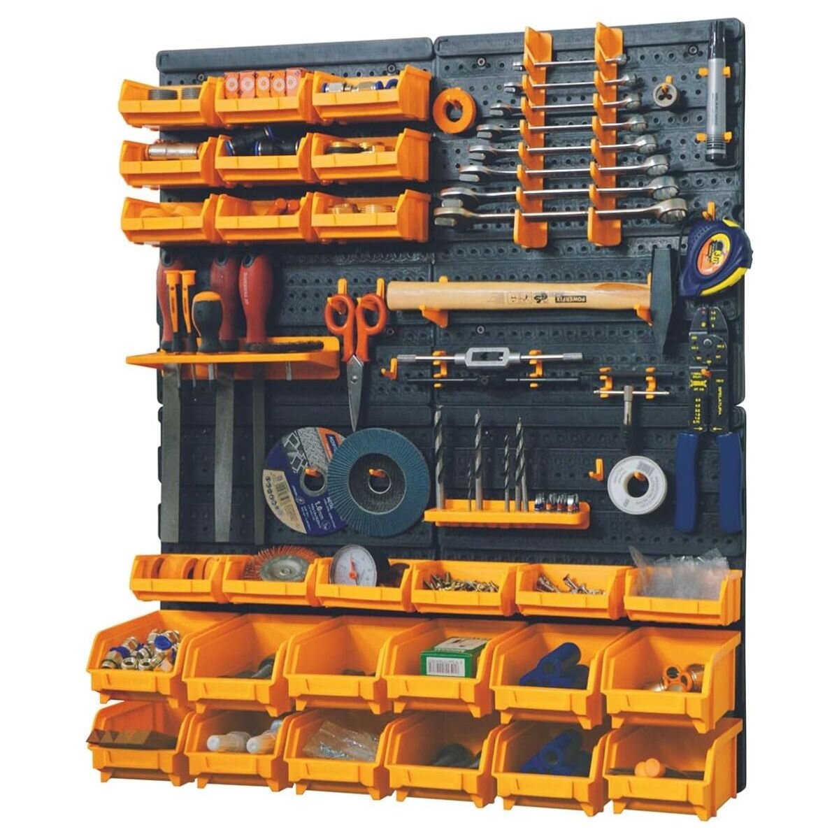 Panel na nářadí s příslušenstvím 73 ks (64 × 18,3 × 77 cm)Udělejte konec chaosu v dílně i garáži. Tento robustní závěsný panel z odolného polypropylenu přinese vašemu nářadí přehled, systém a okamžitou dostupnost. Díky kombinaci panelů, háčků, polic a vyjímatelných boxů si snadno sestavíte...