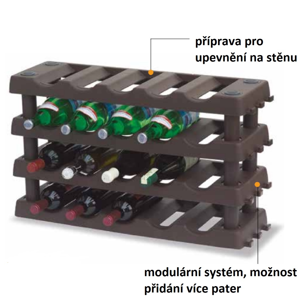 rozměr 71,5x22x49,5 cm, celkem pro 20lahví, možno rozšířit při dokoupení modulu ARTD+70232 o další 2police a 10lahvíJe vhodný do jakéhokoliv prostředí (uvnitř i venku)Vyroben je z odolného plastového materiáluMůžete ho jakkoli složit nebo pokládat na sebe - vytvoříte s tím svoji vlastní vinotéku...