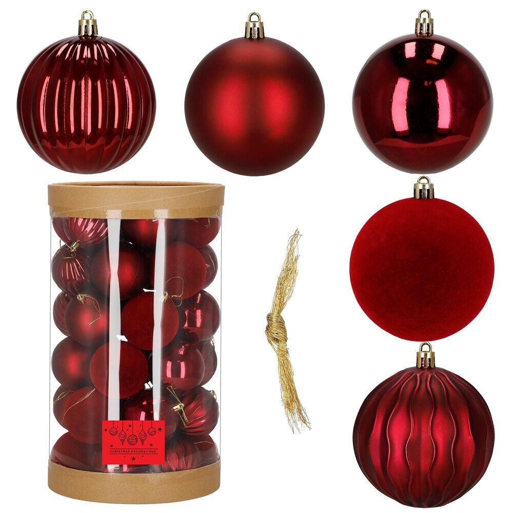 Vánoční baňky červené mix - 8cm sada 36ks, vánoční ozdoby