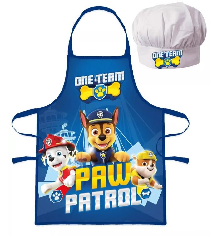 Dětská zástěra s čepicí Paw Patrol a hladoví pejsci záchranáři. Už čmuchají, copak se připravuje v kuchyni. Snad každé dítě vítá tu důležitou roli pomocníka v kuchyni. A se správným oblečkem to bude ten pravý maximální prožitek.Zástěrku i čepici s Tlapkovou patrolou snadno upravíte dle dispozic...