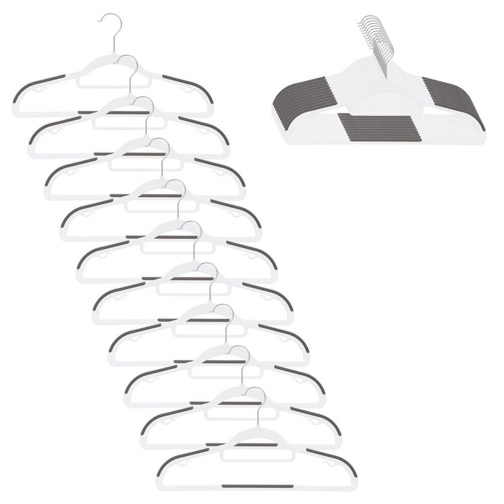 Praktická sada 20 kusů šatních ramínek s protiskluzovým povrchem zajistí bezpečné zavěšení oblečení. Lehká a pevná PE konstrukce unese až 5 kg, otočný 360° hák usnadňuje manipulaci. Ramínka na šaty mají vroubkovaná ramena i příčku proti sklouzávání, dva malé háčky slouží na doplňky. Ideální pro...