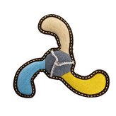 Bumerang jutový 27 cm, robustní aport pro psy, HIPHOP DOG, béžová/modrá/žlutá