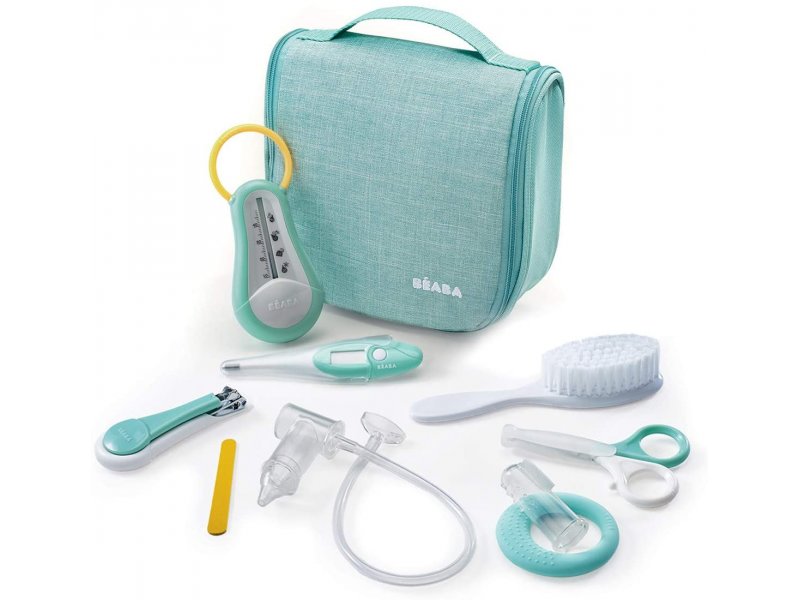 Závěsné toaletní pouzdro Beaba obsahuje devět základních doplňků pro hygienu a péči o dítě v kvalitním provedení: teploměr do vody, digitální teploměr, nůžky a kleštičky na nehty, kartáč na vlasy, kousátko, masážní kartáček na dásně, odsávačku hlenů a pilník na nehty. Pouzdro nabízí množství...