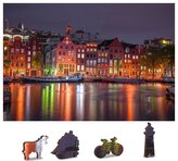 WOODEN CITY Dřevěné puzzle Noční Amsterdam 2v1, 75 dílků EKO