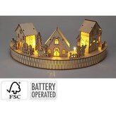 Vánoční dekorace s LED osvětlením 20 cm dřevěná vesnička hnědá KO-AX5350270