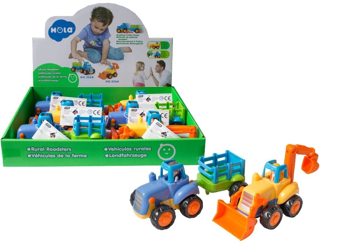 Pojazdy z napędem frykcyjnym. Traktor z przyczepą - 17 cm, koparka - 16 cm.Towar wysyłany losowo. przeczytaj całość
