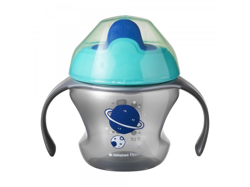 Kubek z miękkim ustnikiem Tommee Tippee ułatwia najmłodszym dzieciom przejście z butelki ze smoczkiem na butelkę z ustnikiem. Uchwyt ma kształt ułatwiający chwyt małymi rączkami dziecka. Dzięki ustnikowi ze specjalnym zaworem zawartość kubka nie wylewa się przy przewróceniu. Miękki materiał ustnika jest idealny dla wrażliwych dziąseł dziecka przy ząbkowaniu. Odczepiana nasadka chroni czystość ustnika w podróży. 2-częściowy zawór niekapka zapewnia łatwe mycie i doskonałą higienę. Zawór, aby go dokładnie oczyścić przed myciem, wystarczy rozłożyć na dwie części. Kubek i wszystkie jego części można myć w górnym koszu zmywarki. Nie zawiera bisfenolu. Nadaje się dla dzieci od 4 miesięcy.