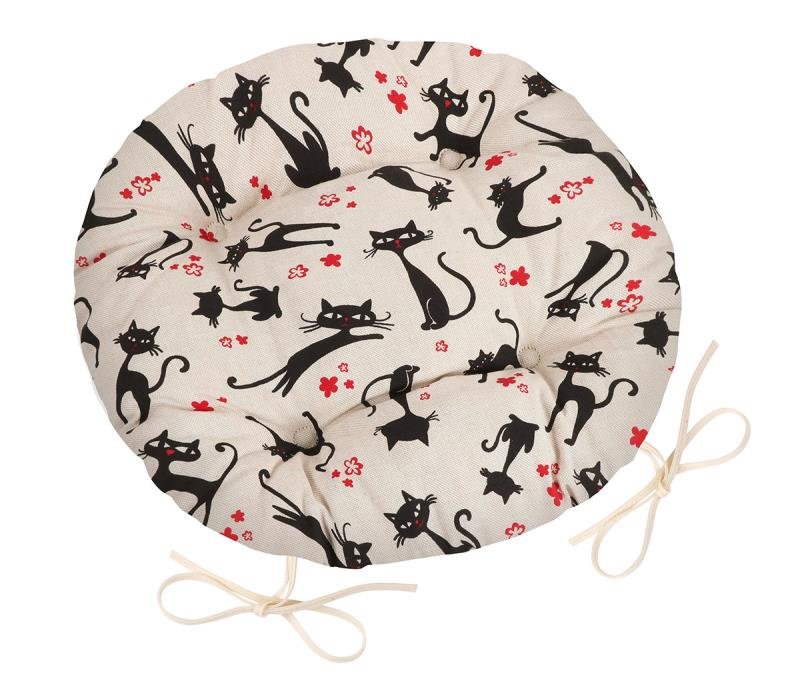 Sedák IVO kulatý prošívaný - černá kočka - průměr 40 cm