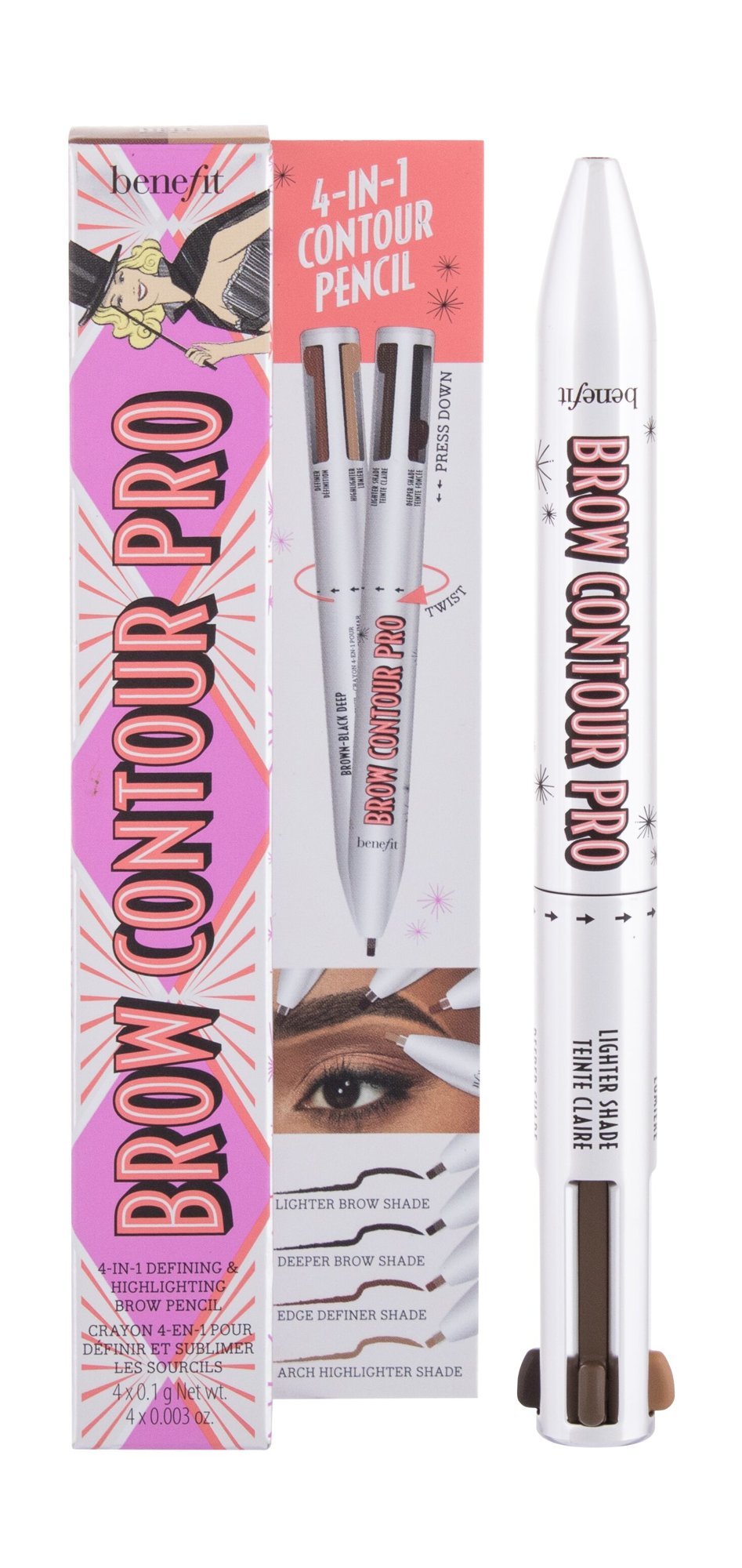 Benefit Brow Contour Pro 4in1 Brow Pencil je multifunkční tužka, pomocí níž vytvoříte perfektní obočí. Oceníte u ní zejména její praktičnost, neboť nabízí čtyři funkce v jednom produktu. Velmi rychle a snadno své nevýrazné obočí zdokonalíte a zvýrazníte.