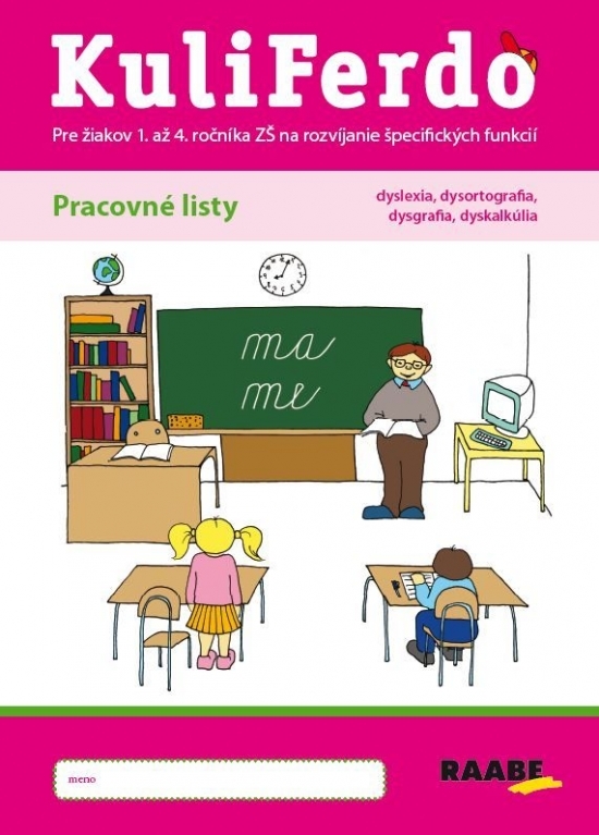V pracovnom zošite KULIFERDO - PRACOVNÉ LISTY pre žiakov 1. až 4. ročníka ZŠ na rozvíjanie špecifických funkcií nájdete inšpiráciu pre prácu so žiakmi s poruchami učenia (dyslexia, dysortografia, dysgrafia, dyskalkúlia) a poruchou pozornosti. Dozviete sa osvedčené návody a postupy, ako správne pracovať so žiakmi s poruchami učenia a pozornosti, ktorí sú integrovaní v bežnej triede.