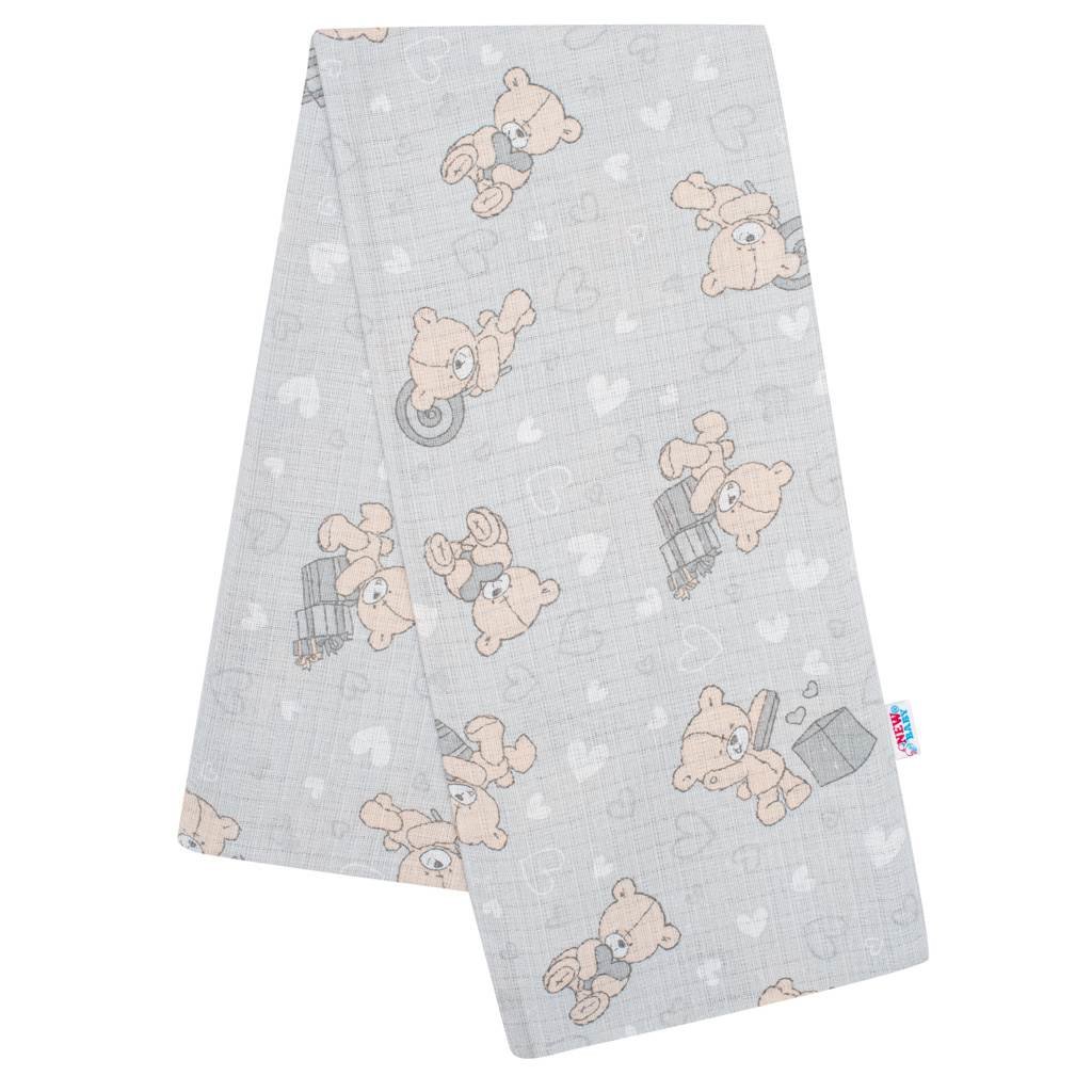 Bavlněná plena s potiskem New Baby šedá medvídek a srdíčko