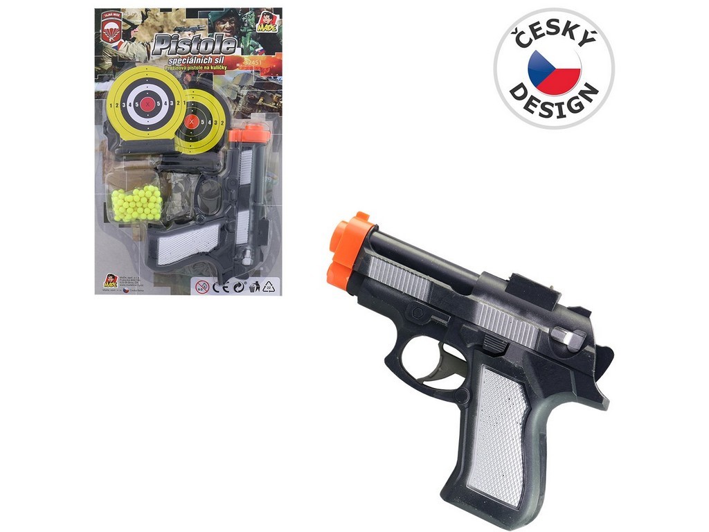 Pistole na kuličky se dvěma terči, 15 cmHračka je určena pro děti 3+.Rozměr hračky je 15 cm.Materiál hračky je plast.Balení hračky je blister card. Karta s českým designem. przeczytaj całość