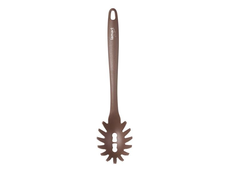 Naběračka na špagety LAMART LT2377 ERGO Naběračka špaget je vyrobená z materiálu nylon, který odolává teplotě do 210 °C. Můžete jí umývat v myčce nádobí. Technické parametry:- rozměr: 29 cm- materiál: nylon- barva: hnědá- 3 roky záruka przeczytaj całość