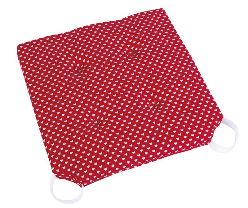Sedák hladký Ulla - červená srdíčka - 40x40 cm,hladký