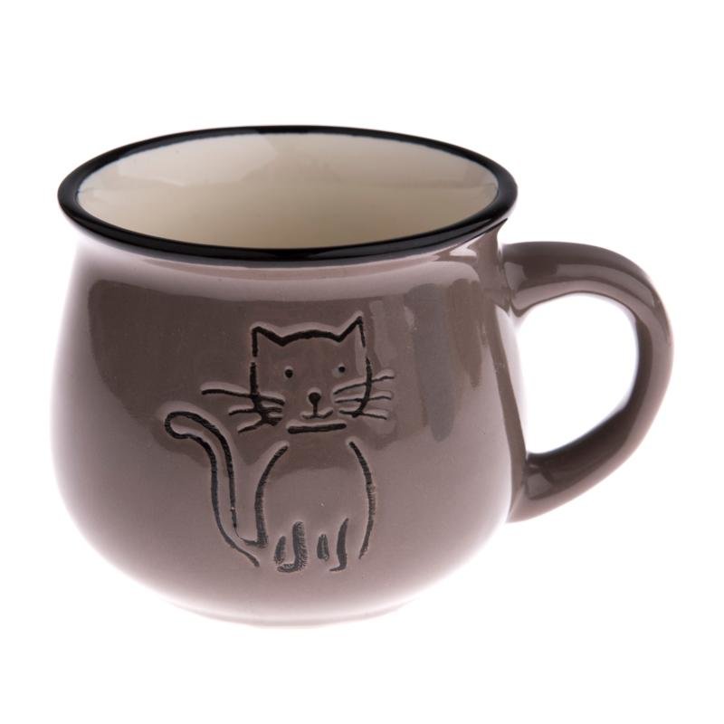 Ceramiczny kubek z motywem kota to idealny towarzysz dla Twoich ulubionych napojów. Jego kompaktowe wymiary i stonowany szary kolor pasują do każdej kuchni i biura oraz ucieszą każdego miłośnika kotów.
