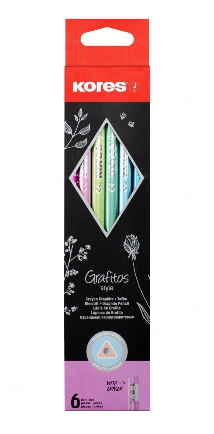Kores Style metalická trojhranná tužka 2HB ( 6 ks )