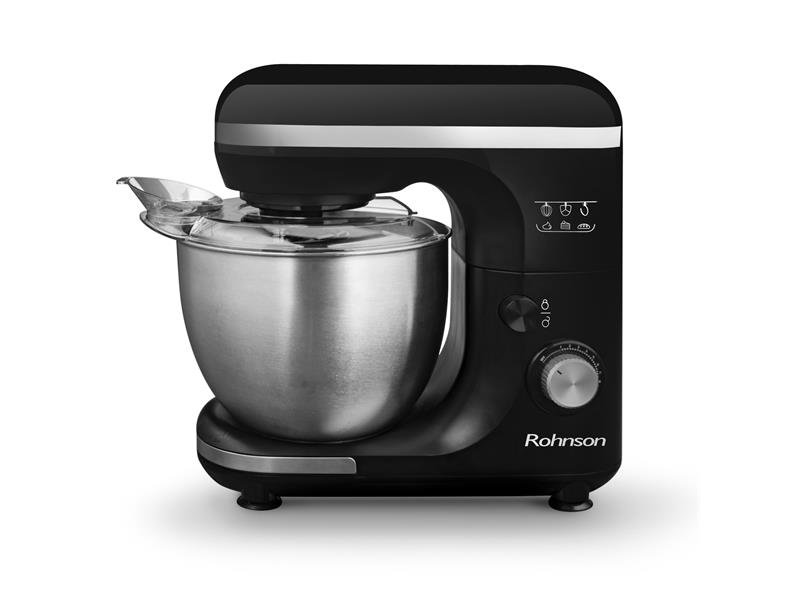 Kuchyňský robot s příkonem 700 W a nerezovou nádobou o objemu 5 litrů. Rohnson R-588 disponuje 7 rychlostními stupni a planetárním systémem míchání. Součástí balení je hnětací hák, šlehací a míchací metla a praktický kryt s otovrem pro přidávání surovin.