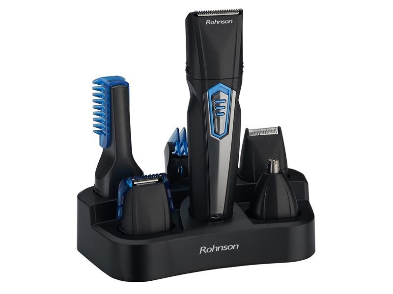 Zastřihovač 9v1 se širokou střihací hlavicí a planžetovým nástavcem pro holení. Rohnson R-1027 poskytuje až 45 min nepřetržitého provozu a ve výbavě má i zastřihovač chloupků z nosu a uší a hlavici pro zastřihování tělových chloupků.