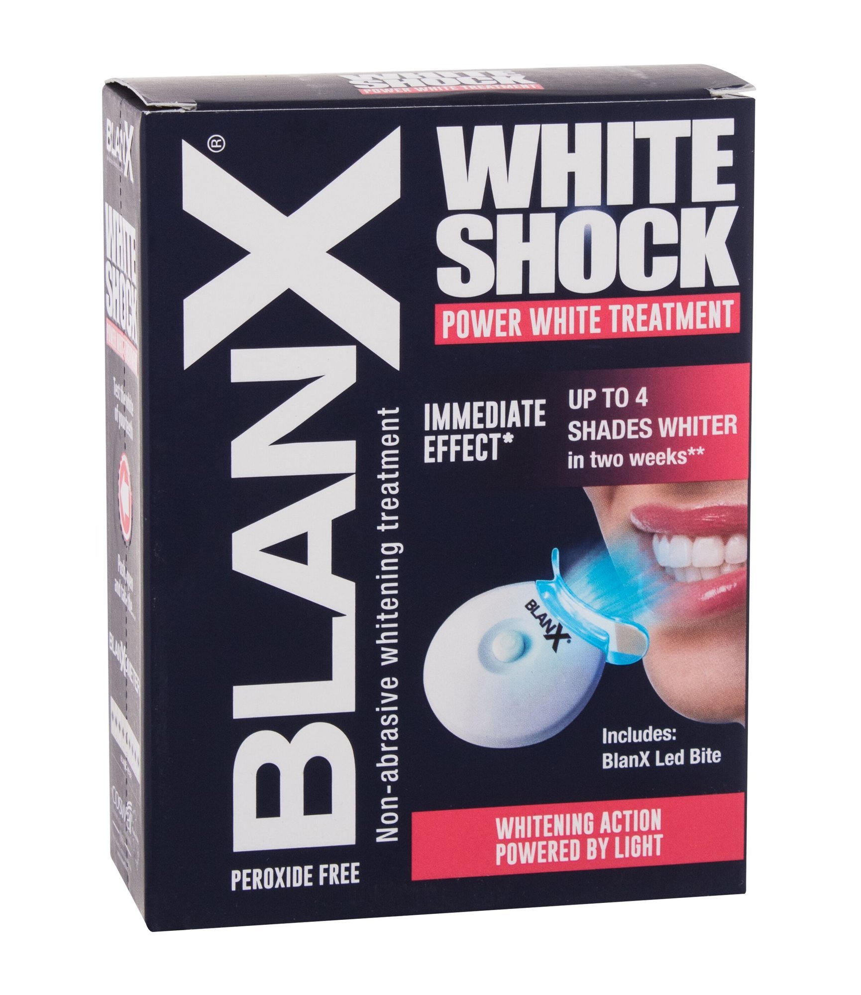 Odhalte nové možnosti domácího bělení zubů s pastou a LED aktivátorem BlanX White Shock Power White Treatment. Pasta obsahuje jedinečné mikrokrystaly Actilux®, které se váží na zubní sklovinu a vytvářejí neviditelnou ochrannou bariéru. Aktivuje se v přirozeném i umělém světle, rozbíjí skvrny a...