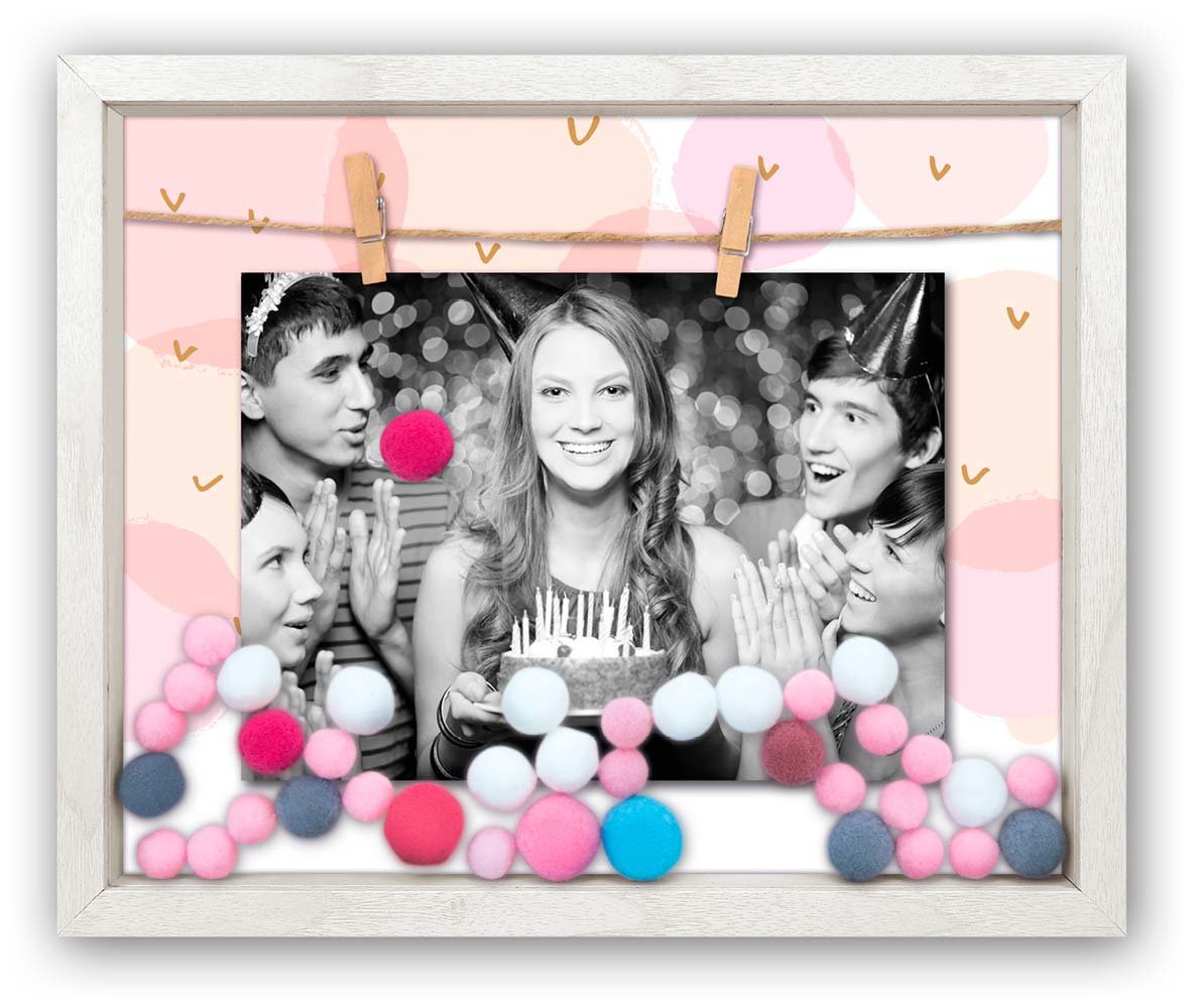 Originální fotorámeček s bublinkami pro fotku o rozměru 10x15 cm. Rozměr rámu 28 x 23 cm, k postavení nebo zavěšení na delší nebo kratší stranu. przeczytaj całość