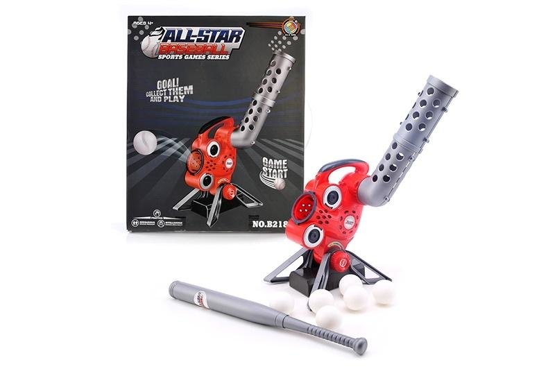 W ZESTAWIE: WYRZUTNIA PIŁEK Z MOŻLIWOŚCIĄ USTAWIENIA POCHYLENIA, KIJ DO BASEBALLU, 6 PIŁEK, WYM. OPK: 36 X 43,5 X 12 CM., 4+ przeczytaj całość