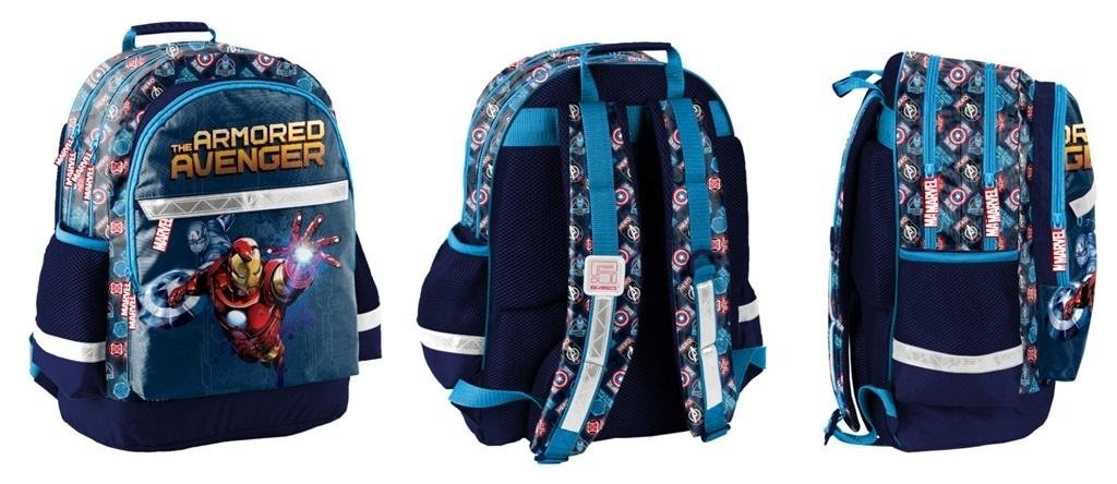 Plecak szkolny z dwoma komorami dużymi, dwoma kieszeniami na przodzie, bocznymi kieszonkami z siatki. Usztywnione, ergonomiczne wyprofilowane plecy i szelki. Plecy i szelki pokryte miękkim materiałem. Usztywnione denko. Elementy odblaskowe. przeczytaj całość