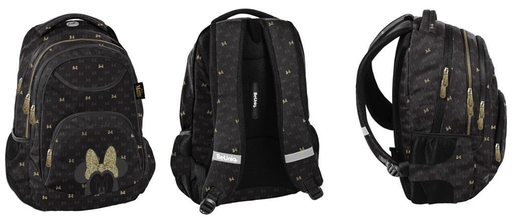 Plecak szkolny. Trzy pojemne komory, kieszeń przednia z organizerem, 2 boczne kieszenie z siatki+materiał. Wzmocnione profilowane plecy, miękkie wygodne szelki. Wzmocniony i usztywniony spód. Wygodny uchwyt do przenoszenia i uszko do powieszenia. W komorze głównej przegroda (na laptop), w drugiej...
