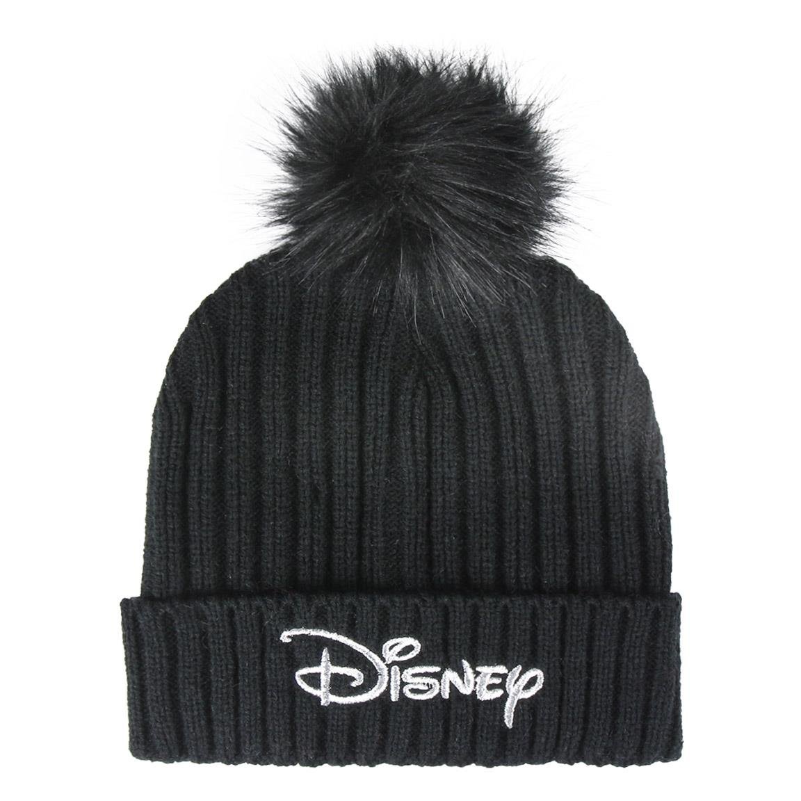 Černá zimní čepice s bambulí a bílým logem Disney na přední straně.