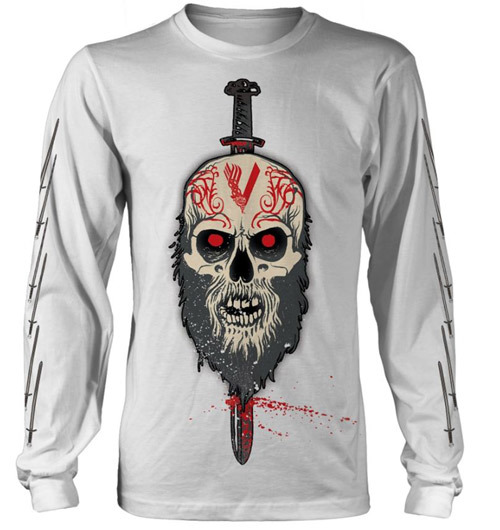 Oficiální tričko z katalogu merchandise produktů s logem, grafikou a fotografiemi filmového seriálu Vikingové/Vikings.Zboží je legálně licencováno a prodáváno se souhlasem vlastníků licenčních práv.Bílé pánské tričko s dlouhým rukávem a s potiskem Berserker z filmového seriálu...