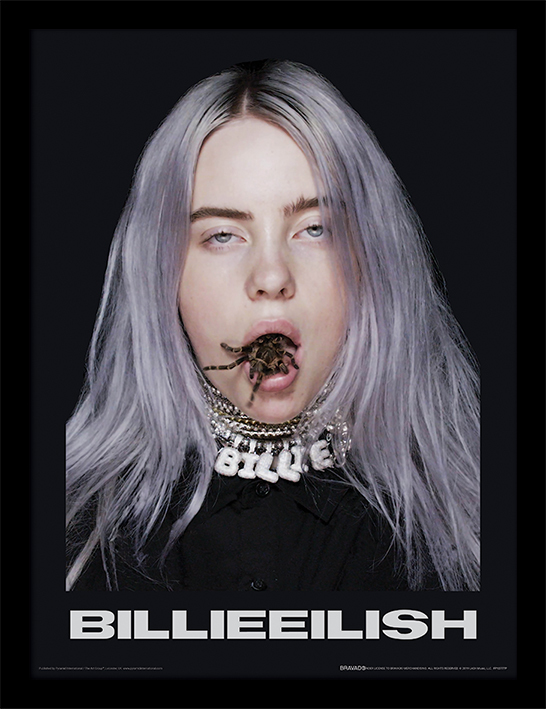 Oficiální plakát v rámuz katalogu zboží s licencí americké zpěvačky Billie Eilish.