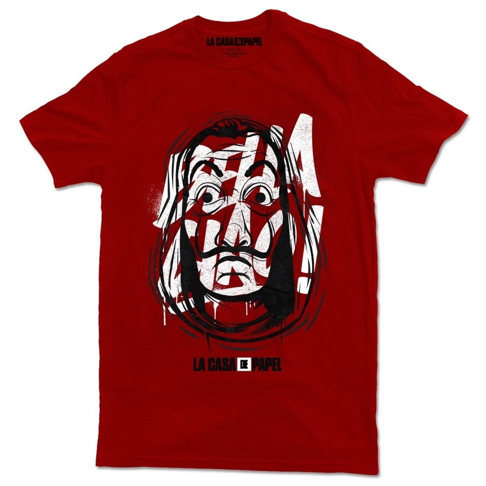 Oficiální tričko z katalogu dárkových, sběratelských a upomínkových produktů s logem a grafikou akčního a krimi TV seriálu La Casa De Papel (Papírový dům).Zboží je legálně licencováno a prodáváno se souhlasem vlastníků licenčních práv.Pánské červené tričko s inspirované TV seriálem La Casa De...