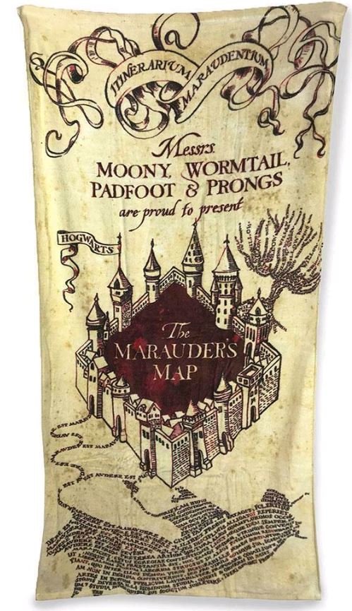Wysokiej jakości beżowy ręcznik przedstawiający Mapę Huncwotów, magiczną mapę Szkoły w Hogwarcie.