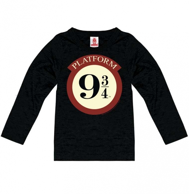 Dětské černé tričko s dlouhým rukávem a motivem nástupiště 9 a 3/4 z filmu Harry Potter.