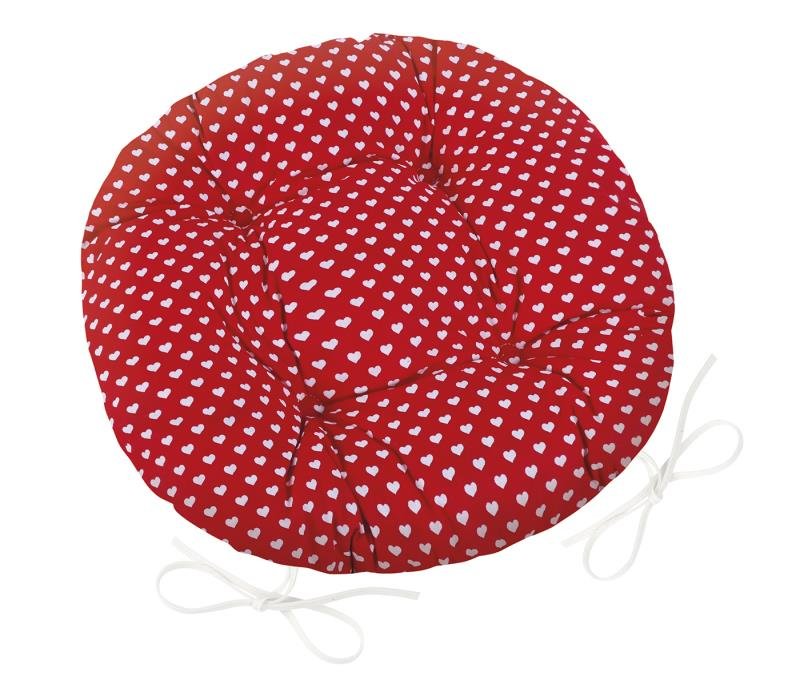 Sedák Adéla prošívaný kulatý - červená srdíčka - průměr 40 cm