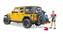 Zabawka Jeep Wrangler Unlimited Rubicon z figurką kolarza i rowerem | Bruder 02543