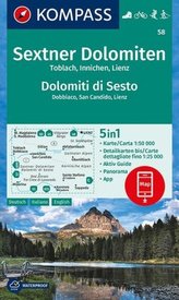 Sextner Dolomiten, Dolomites di Sesto, Toblach, Dobbiaco, Innichen, San Candido, Lienz 1:50 000 / turistická mapa KOMPASS 58