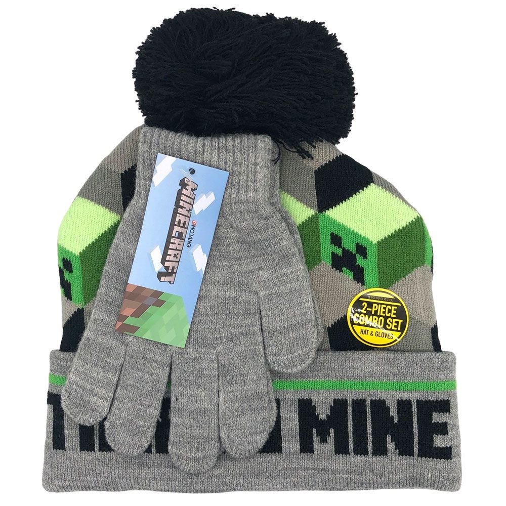 Zimní čepice a rukavice Minecraft pro děti a mládež: Time To Mine (universální) šedá akryl