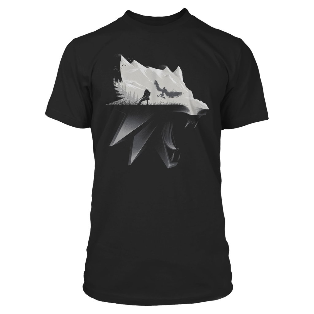 Pánské tričko The Witcher 3|Zaklínač 3: Wolf Silhouette (2XL) černé