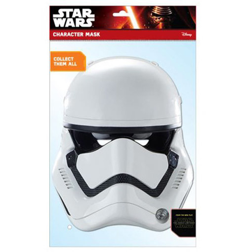 Oficiální maska z katalogu produktů s logem, fotografiemi herců a grafikou ze slavné filmové sci-fi ságy Star Wars.