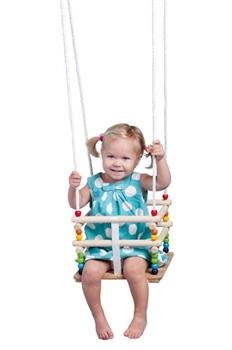 Houpačka Woody dřevěná pro nejmenší s ohrádkou a páskem