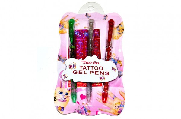 Zamień swój pokoik w salon tatuażu i ozdób lalki fajnymi tatuażami! Naklejki do tatuażu użyj jako szablonów do swoich tatuaży. Zdejmij naklejkę i przyłóż ją w wybrane miejsce. Ostrożnie wypełnij odpowiednie wzory, pozostaw tusz do wyschnięcia na ok. 10 min i ostrożnie usuń naklejkę. Opakowanie zawiera: 3 żelowe pisaki do tatuażu, szablony. Wymiary opakowania 10 x 18 x 1 cm.