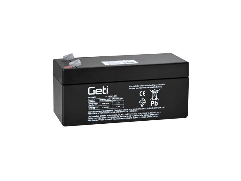 Baterie olověná 12V 3.3Ah Geti Olověný akumulátor Geti je vhodný jako náhrada za baterie pro záložní systémy UPS, záložní zdroje pro všechny aplikace EZS, EPS a telekomunikace, záložní svítidla a nabíjecí baterky, hračky, řídící systémy, alarmy, výstražné mobilní a...