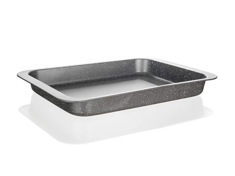 Głęboka blacha do pieczenia Granite 36,5 x 27 x 4,5 cm, grubość dna i ścianki 0,4 mm.Pekáče i formy do pieczenia z nieprzywierającą powłoką są niezastąpionym pomocnikiem w każdej kuchni. Powłoka nieprzywierająca XYNFLON jest wykonana na bazie PTFE (politetrafluoroetylen), jest wysoce odporna, ma pierwszorzędne właściwości antyadhezyjne i jest łatwa w utrzymaniu.
