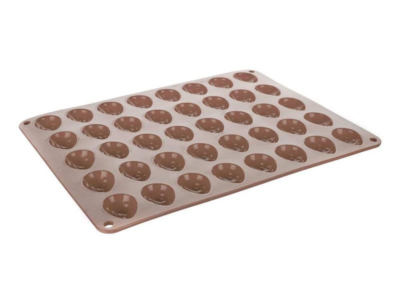 Silikonowa forma CULINARIA Red na 40 sztuk orzechów o wymiarach formy 34 x 26 x 1,4 cm. Forma jest odporna na wysokie temperatury (do 240 st. C) i nie absorbuje smaków ani zapachów potraw. Ciastka nie przywierają do formy i można je łatwo wyjąć. Forma jest łatwa w utrzymaniu i nadaje się do zmywarki. Silikon jest bardzo popularnym materiałem, który ze względu na swoje wyjątkowe właściwości znalazł zastosowanie także w kuchni. Wytwarza się z niego różne rodzaje form do pieczenia, wałki do ciasta, szpatułki, pędzelki do smarowania, przybory kuchenne i wiele innych produktów.