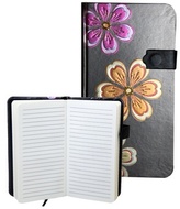 Zápisník s magnetickým klipem 85x160 mm černý s 3 květinami B