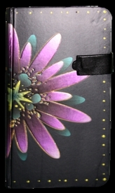 Zápisník s magnetickým klipem 85x160 mm fialová květina