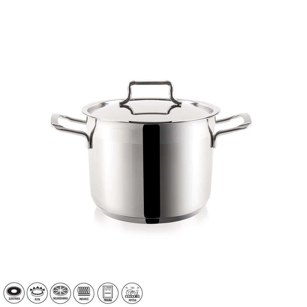 Hrnec s nerezovou poklicí s otvory pro únik páry - objem 4,6 l, pr. 20 cm, v. 15 cm. Nerezové hrnce představují díky používaným technologiím a kvalitním materiálům výrobek vhodný pro každou moderní domácnost a jsou ideální cestou ke zdravé výživě, dietní, ekonomické a estetické přípravě pokrmů....