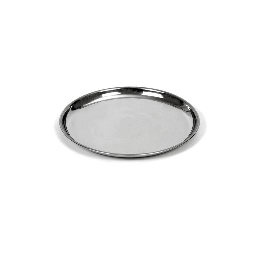 Okrągła taca do serwowania. Materiał: stal nierdzewna. Wymiary: śr. 18 cm. przeczytaj całość